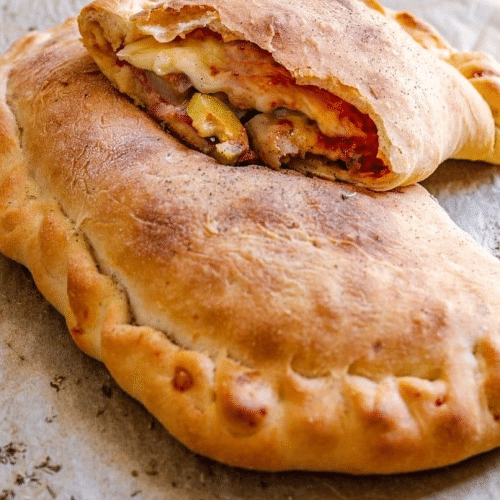 Tomatensaus, mozzarella, kipfilet, jalapeños, ui, paprika en olijven
